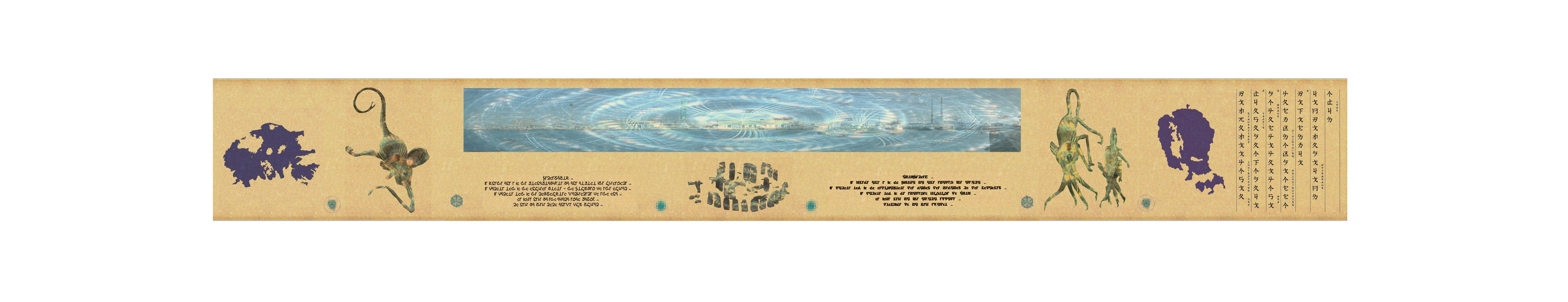 Les illustrations nous demeurent le plus souvent énigmatiques. Elles concernent pour beaucoup d’entre elles des lieux et des êtres situés ou issus de la Terre ; d’autres relèvent presque certainement des deux îles originairement appelées Lara et Béniel et qui pour finir devinrent Shukun et Dansil (selon le manuscrit, leurs noms ne cesse de se modifier à mesure que leur surface diminue), dont l’une au moins est située sur la planète Énantia ; pour quelques unes enfin, il est impossible d’identifier par simple examen les visages qui y figurent, de dire où se trouvent les bâtiments et les paysages qui y trouvent représentés.