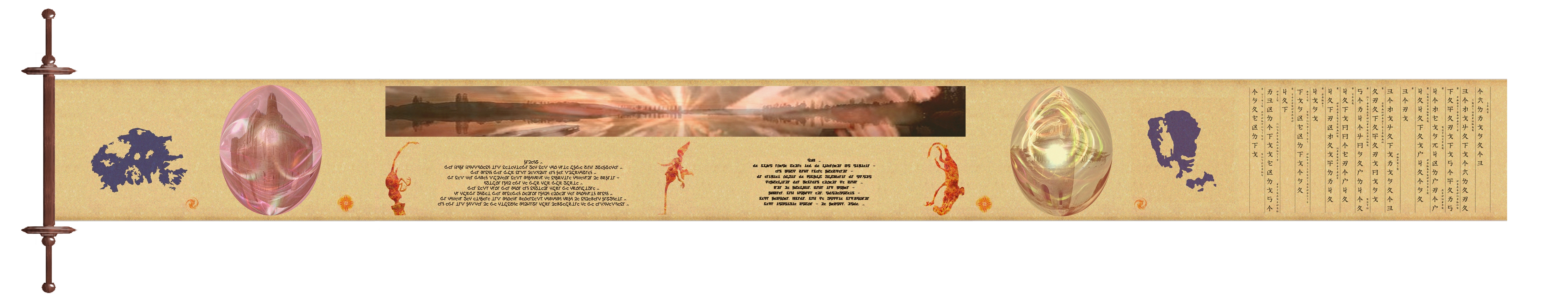 5°) Une étude des illustrations figurant dans le manuscrit, avec un certain nombre de considérations particulières concernant ses « vignettes », qui sont des cryptoglyphes, — une sorte d’écriture symbolique proche de celle employée par Andrea Berndt-Wieland dans son poème : Deux Mondes, ainsi que par Irma Waybourne et Ève de Poitiers dans leur recueil : EingAnjea, dans lequel se trouvent évoquées sept de leurs « vies parallèles ».