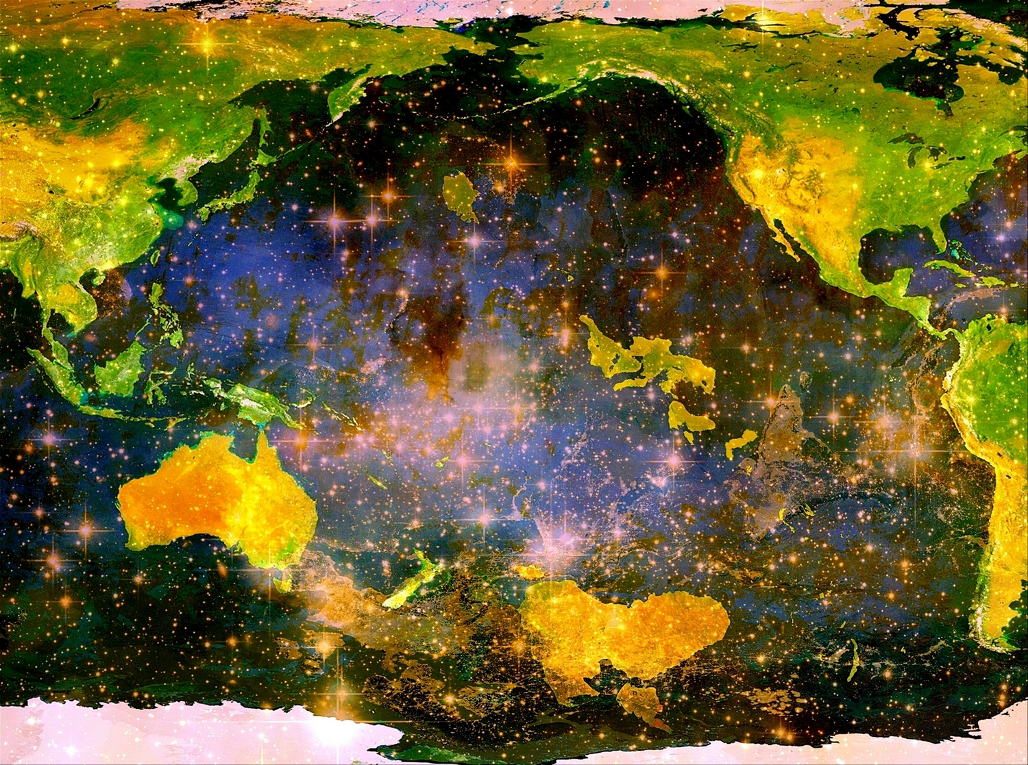 - dans sa région équatoriale, l’équivalent d’un planisphère détaillé de l’archipel planétaire d’Énantia (bien qu’à une échelle très significativement réduite !) ;