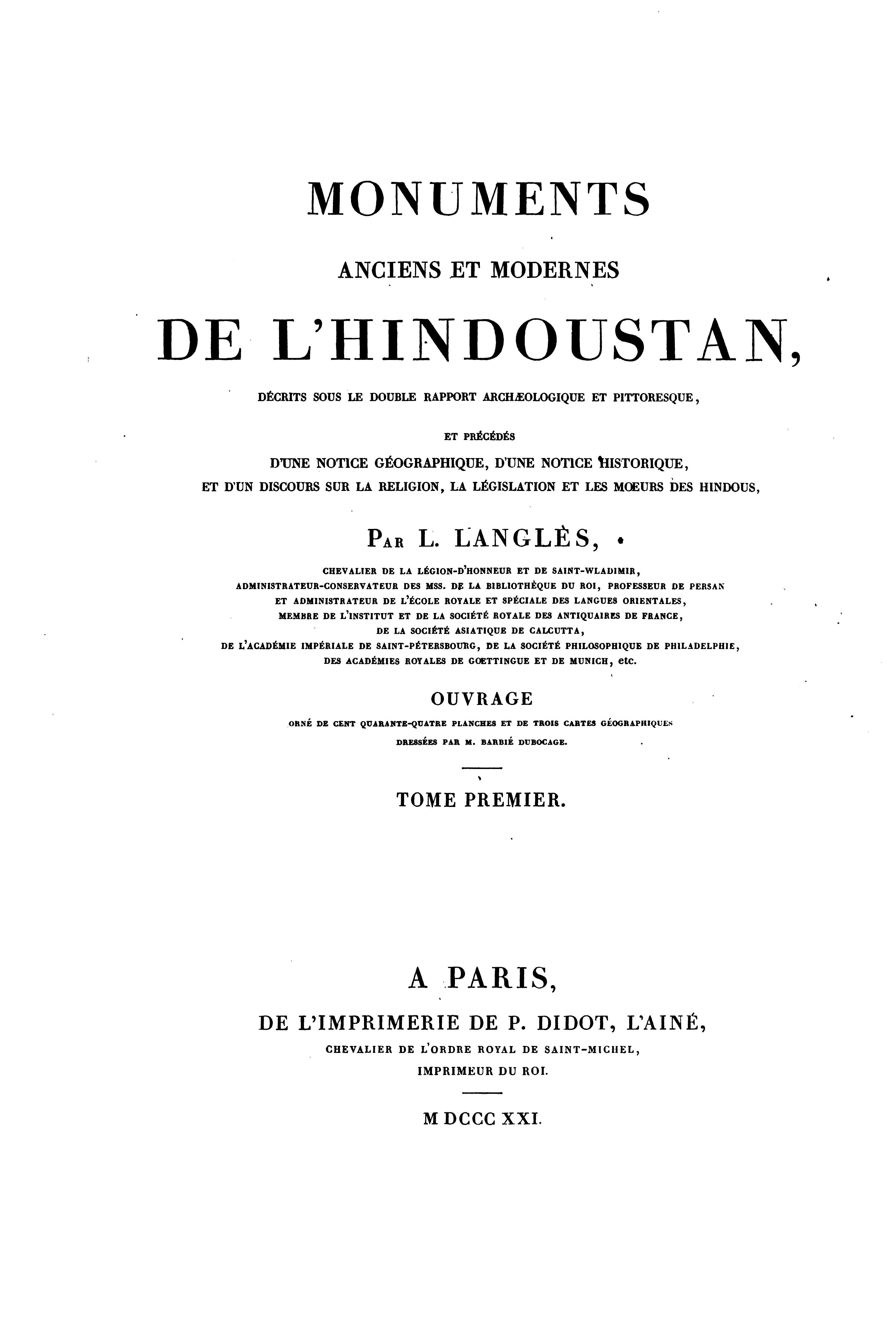 Langlès, Monuments anciens et modernes de l’Hindoustan,