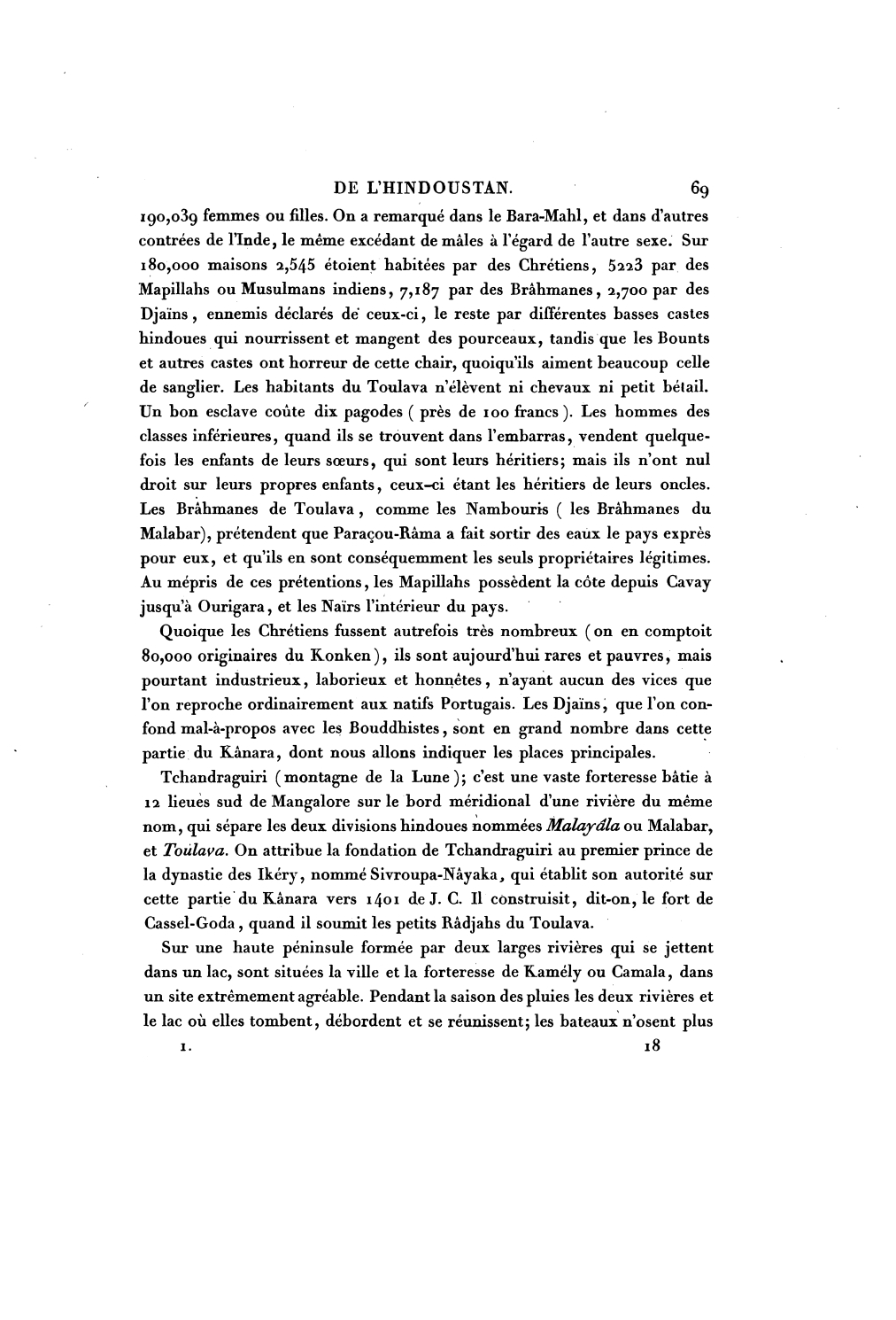 « Les Djaïns, que l’on confond mal-à-propos avec les Bouddhistes, sont en grand nombre dans cette partie du Kânara, dont nous allons indiquer les places principales.