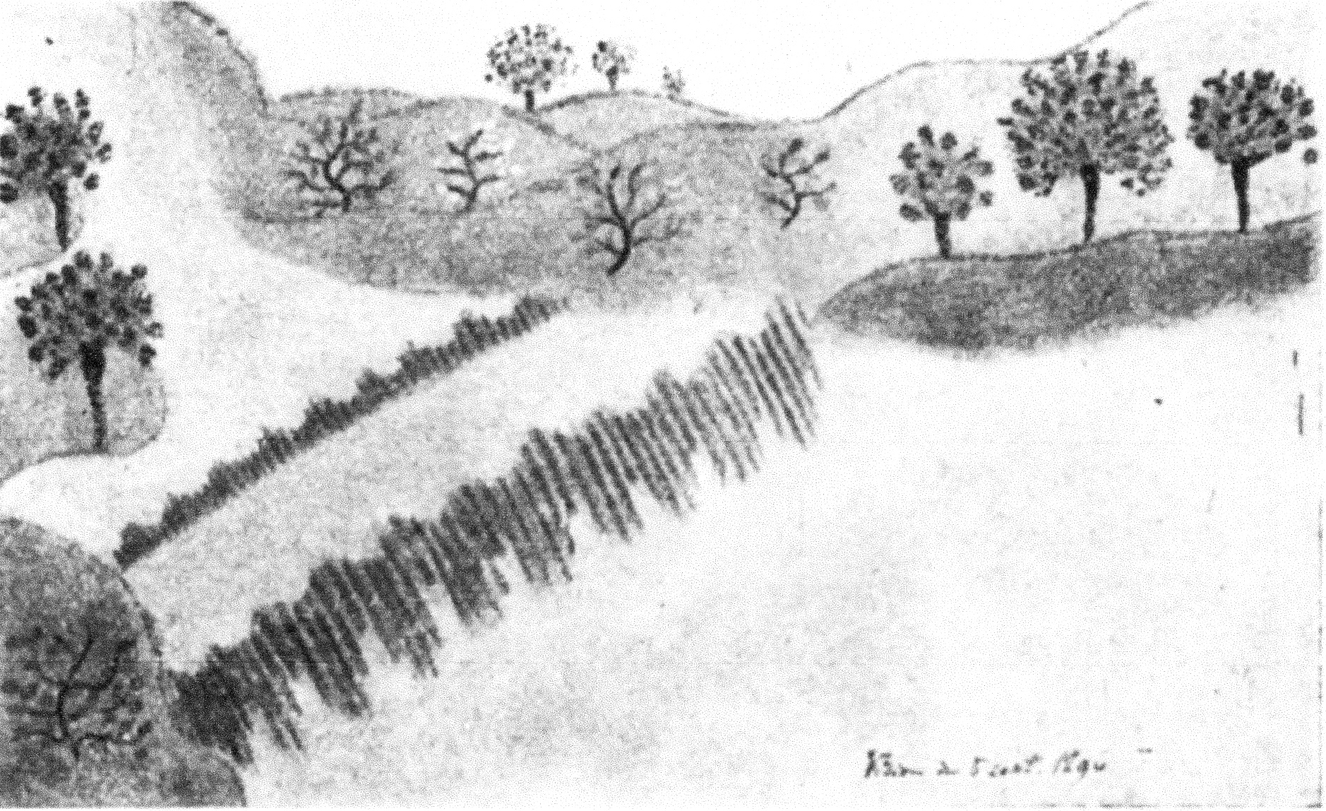 La maison d’Astané (fig. 12, p. 152) et les grands paysages des fig. 13 et 14 sont également le produit d’une activité quasi automatique (en état de veille complète quant au reste) qui donne toujours une pleine satisfaction à Mlle Smith. C’est en quelque sorte son Moi subliminal qui tient lui-même le pinceau et exécute à sa convenance ses propres tableaux, lesquels ont ainsi la valeur de véritables originaux. D’autres dessins, au contraire (par exemple, le portrait d’Astané, fig. 11, p. 148), qui ont coûté à Hélène beaucoup plus de peine sans arriver à la contenter entièrement, doivent être regardés comme de simples copies de mémoire, par la personnalité ordinaire, des visions passées dont le souvenir s’est gravé dans l’esprit d’une façon assez [164] persistante pour servir encore de modèle plusieurs jours après. Dans les deux cas, mais surtout dans le premier, les peintures d’Hélène peuvent être tenues pour une fidèle reproduction des tableaux qui se déroulent au-dedans d’elle, et nous donnent par conséquent, mieux que beaucoup de descriptions verbales, une idée du caractère général de ses visions martiennes.