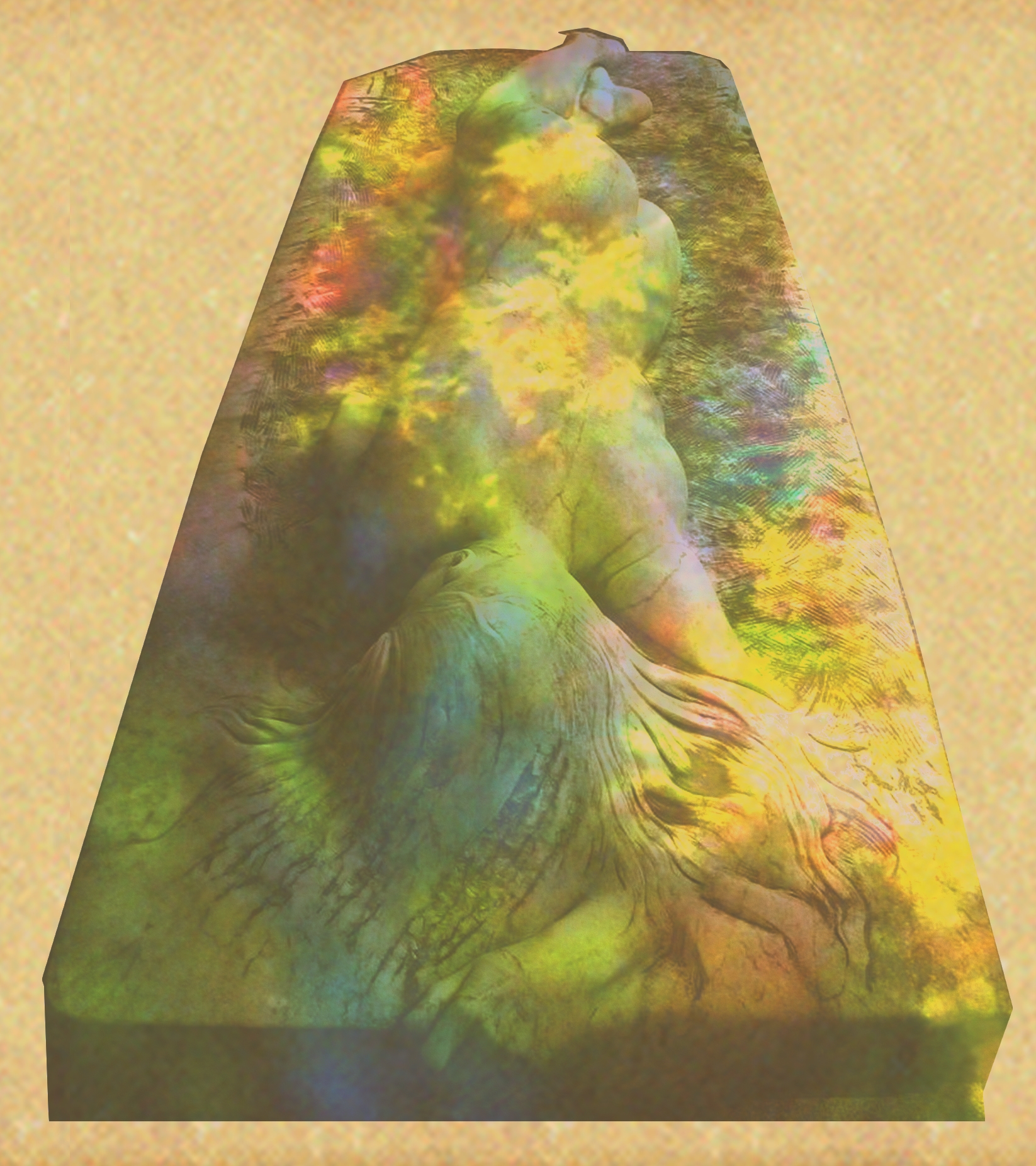 Lorsque je me rendis pour la première fois sur la tombe d’Irma, au Melbourne General Cemetery de Parkville, je fus ému par sa modestie, et l’état de décrépitude de sa simple croix de bois devenue grise après six ans d’exposition aux intempéries ; c’est là que je conçus l’idée de faire ériger pour elle un monument funéraire qui prendrait pour modèle celui qu’on trouve dans le Manuscrit LaraDansil, où se trouve symbolisé le sacrifice de deux des quatre disparues de Hanging Rock : Jenaveve McCraw et Miranda Waybourne, la sœur aînée d’Irma, qui donnèrent leur vie pour que soient sauvés Marion Waybourne et toute la gent des Snoutobreξ :