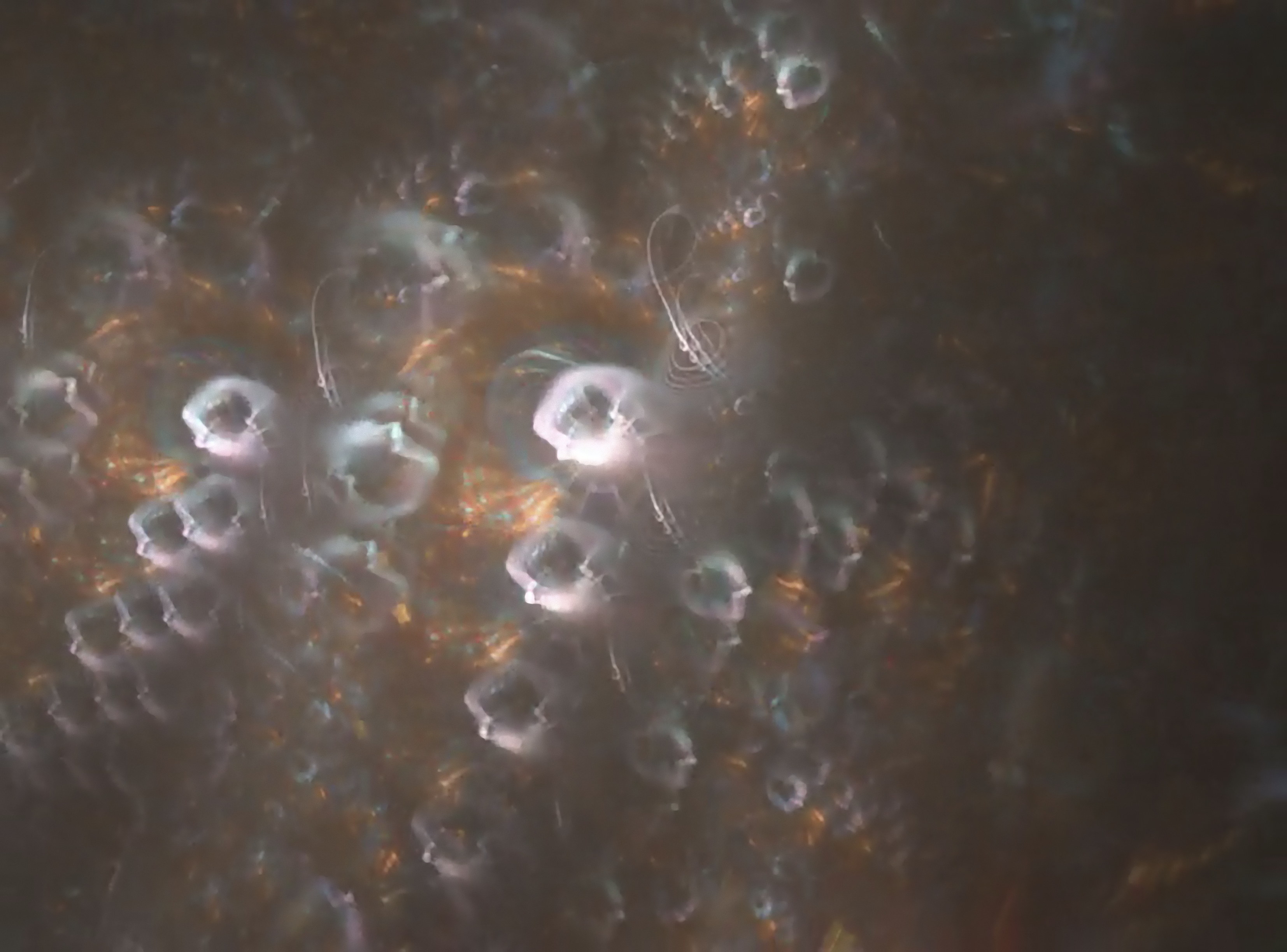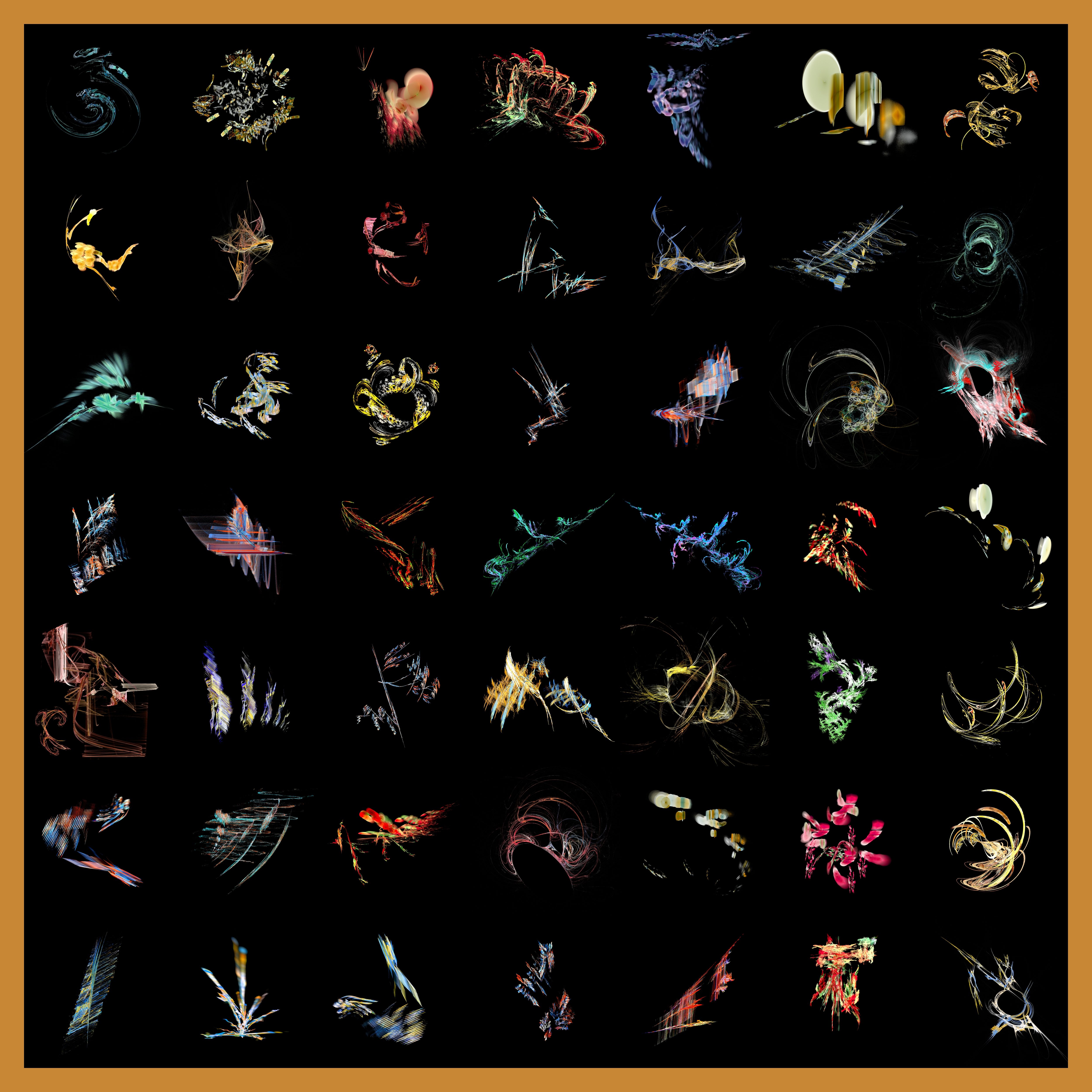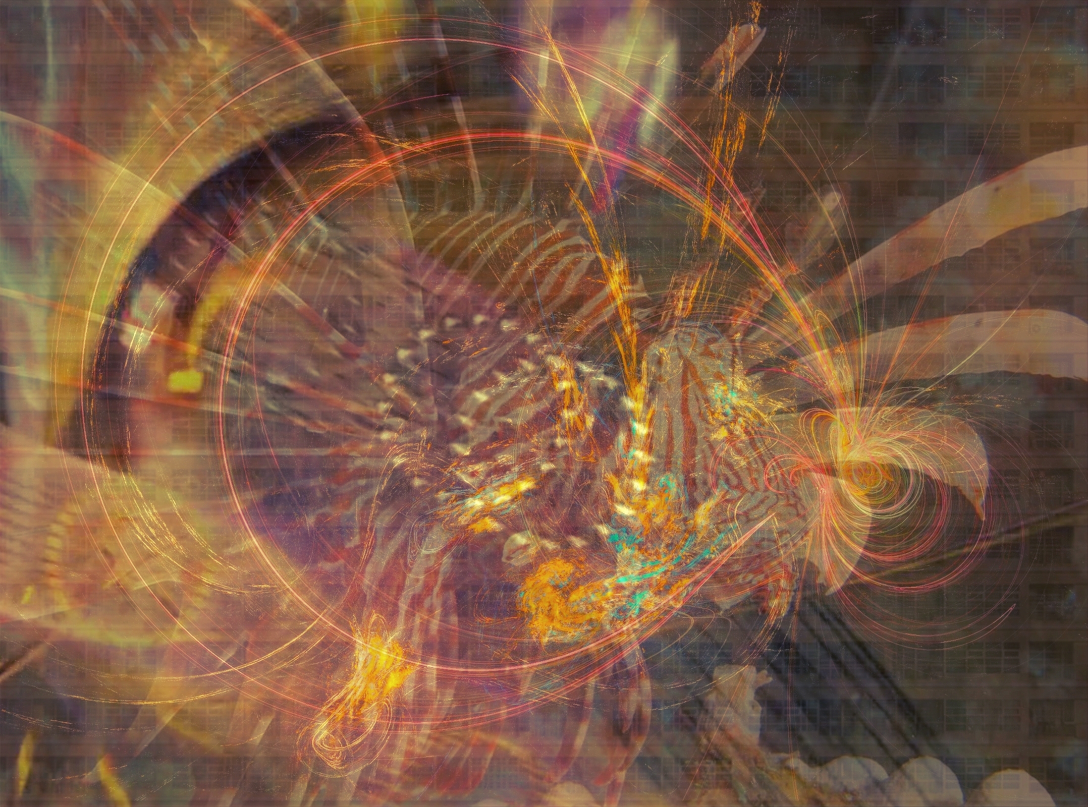 Ces motifs se superposent, soit à une image tout ce qu’il y a de plus figurative, soit à un fond vaguement stellaire, dont il est difficile de préciser la nature, mais qui seraient des « symboles d’affects ».
