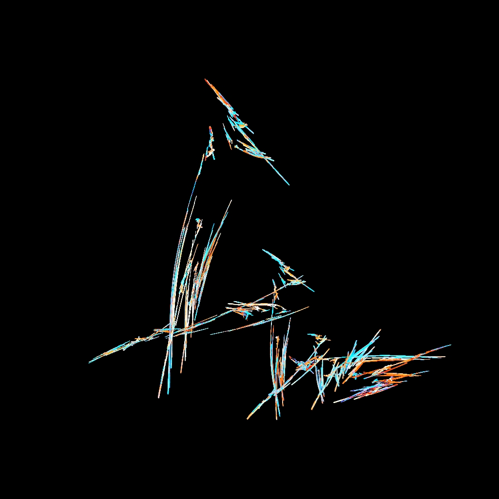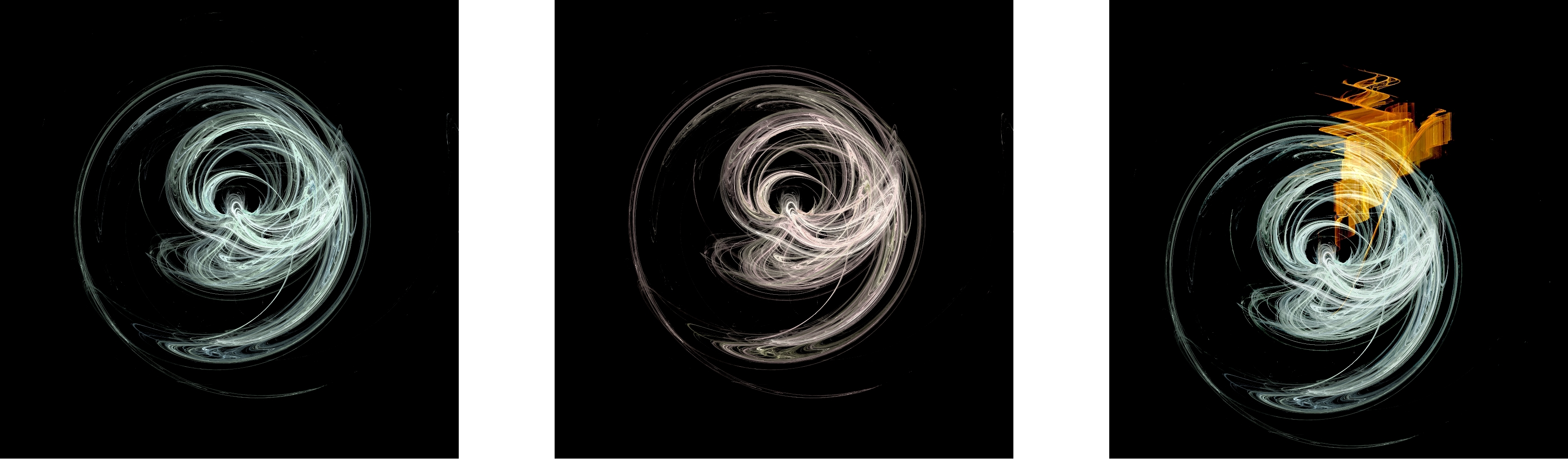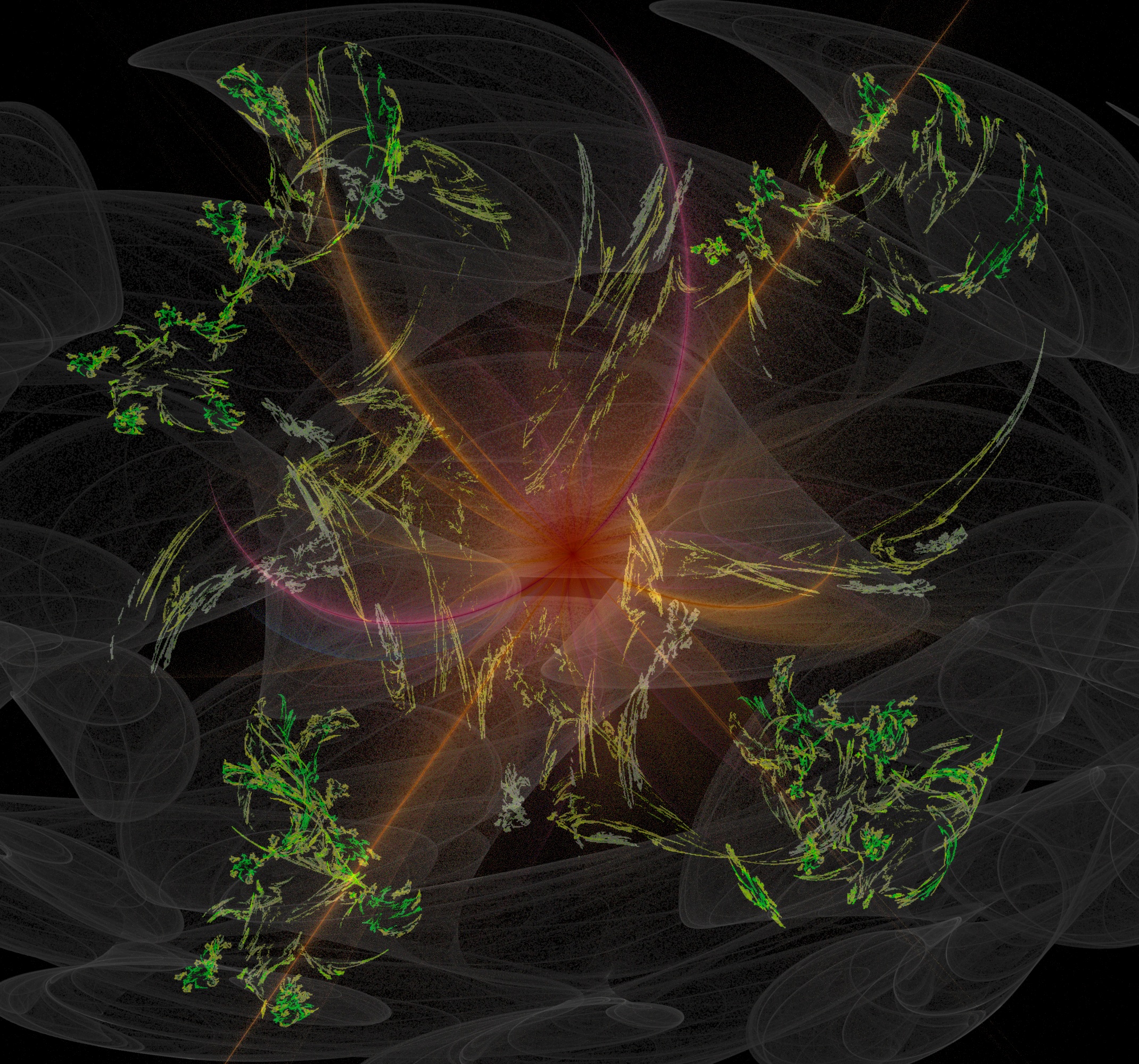 « Ainsi, partie d’une séparation abrupte entre glyphes (signes inertes) et nébulosités (esprits en mouvement), je viens d’obtenir, comme je vous l’ai promis, deux types d’entités intermédiaires : les affects singuliers (ce que dans mes tableaux vous appelez les « fonds colorés »), et les spectres des choses mortes, qui sont, non des nébulosités, mais des éclats de nébulosité, et dont les reflets s’éparpillent au hasard des flux et des reflux de la causalité matérielle.