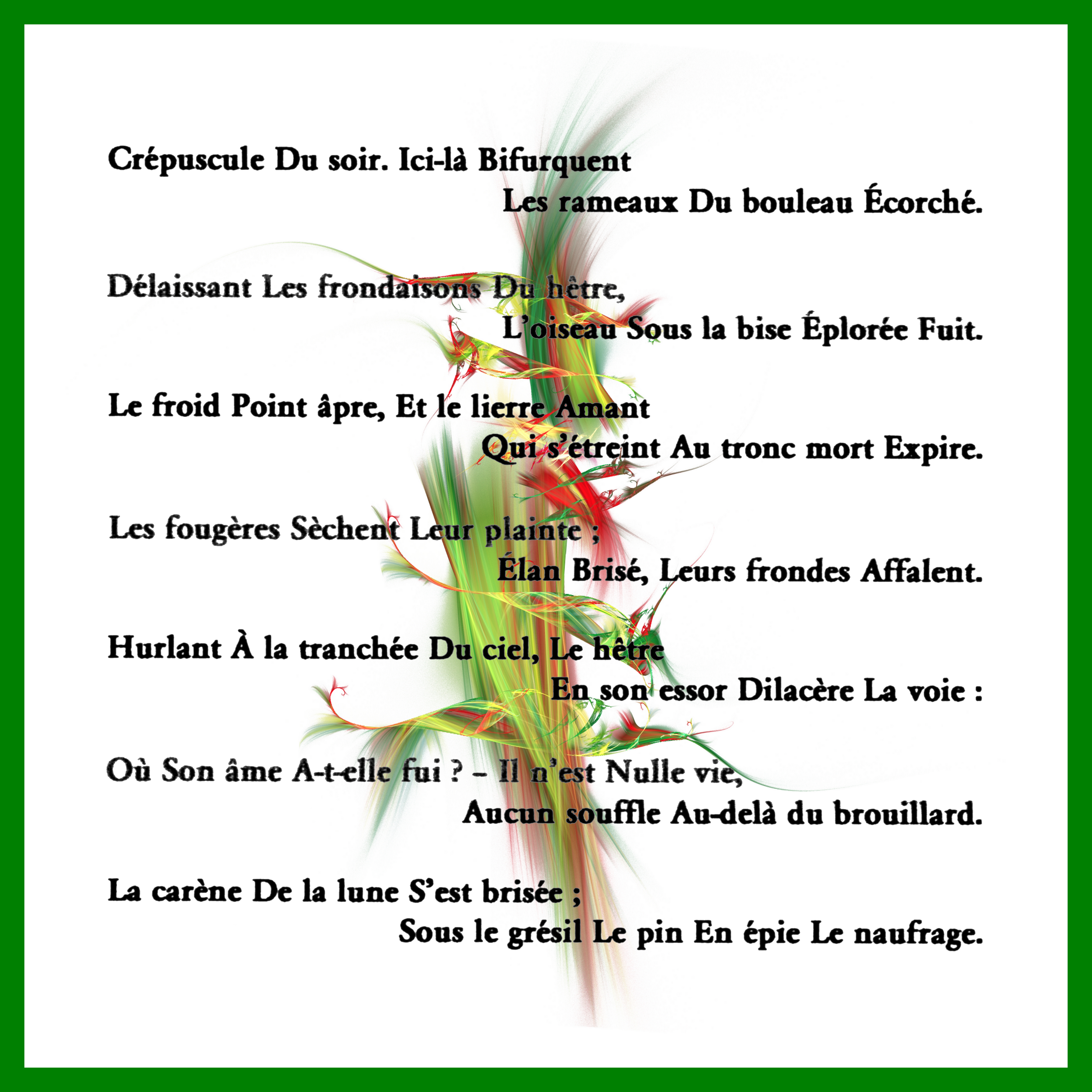 L’intrication Des confluents, Pour lui qui nie Et pour elle qui règne, Est l’erre Où le destin S’abîme,