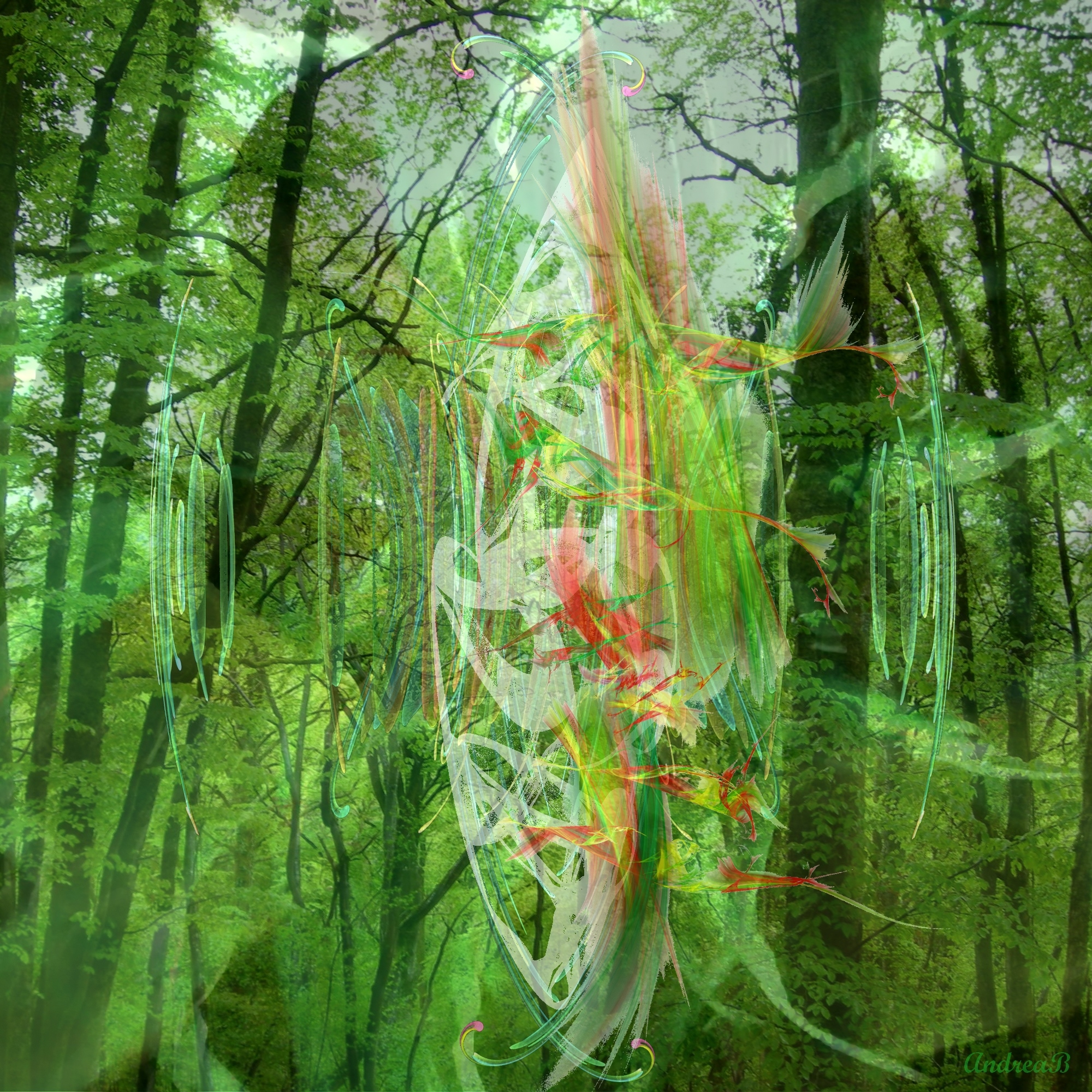 « Dans le tableau figuratif de la page 10 (ensemble Forêt), apparaît une étrange figure anthropomorphe : S’agit-il d’une simple nébulosité, ou de l’esprit complexe d’un être humain ?