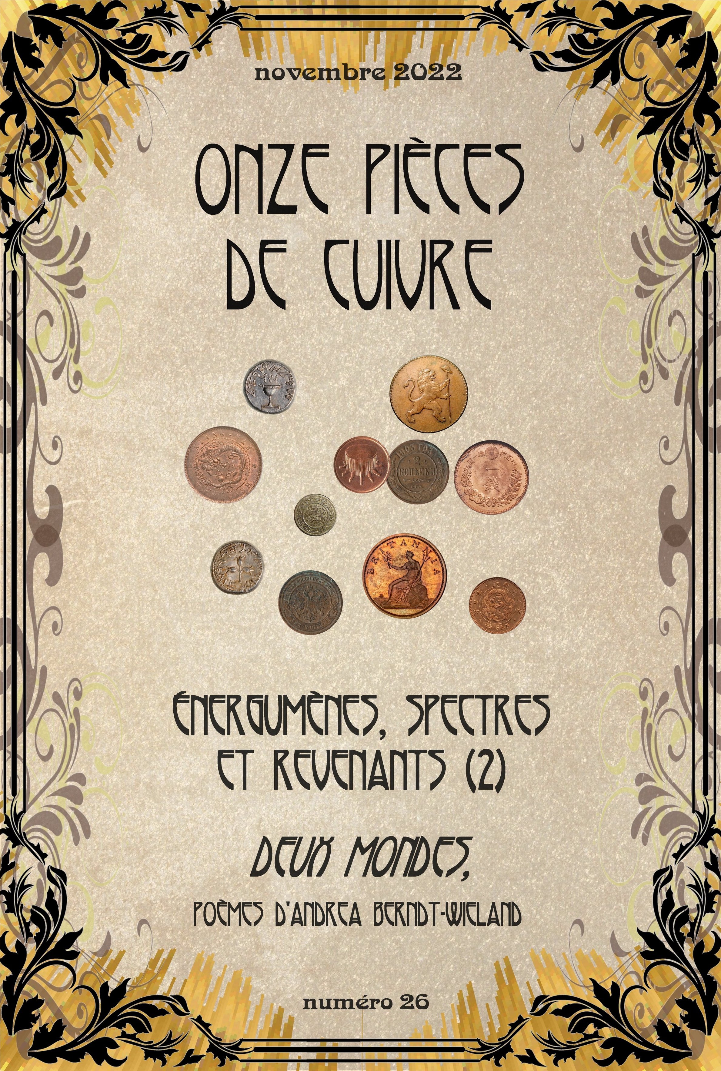 (Le crytoglyphe : « Titre » figure sur la page de couverture de l’œuvre, et commente, de l’aveu même d’Andrea Berndt-Wieland, la mention : « Deux mondes », tandis que le cryptoglyphe « Deux mondes » a été extrapolé par moi à partir du cryptoglyphe : « Dans le monde », cf. Machines vers I, ci-dessus.)