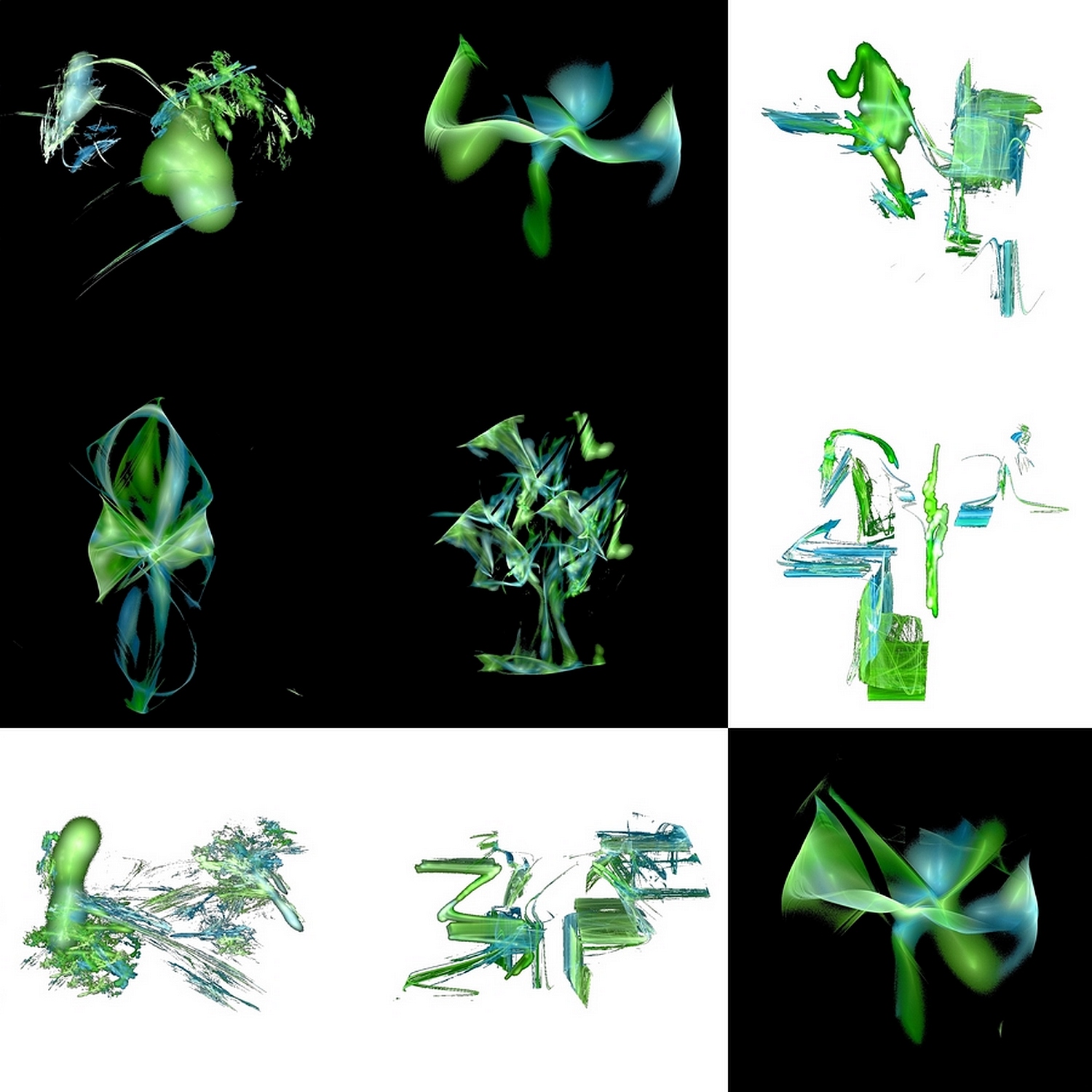 Dans ces ensembles, les emblèmes, icônes et éclats sont étroitement connectés : les tables de cryptoglyphes et de fragments poétiques sont incrustées, dans la version finale d’EingAnjea, sur le dessin de leurs emblèmes, au détriment parfois de leur lisibilité :