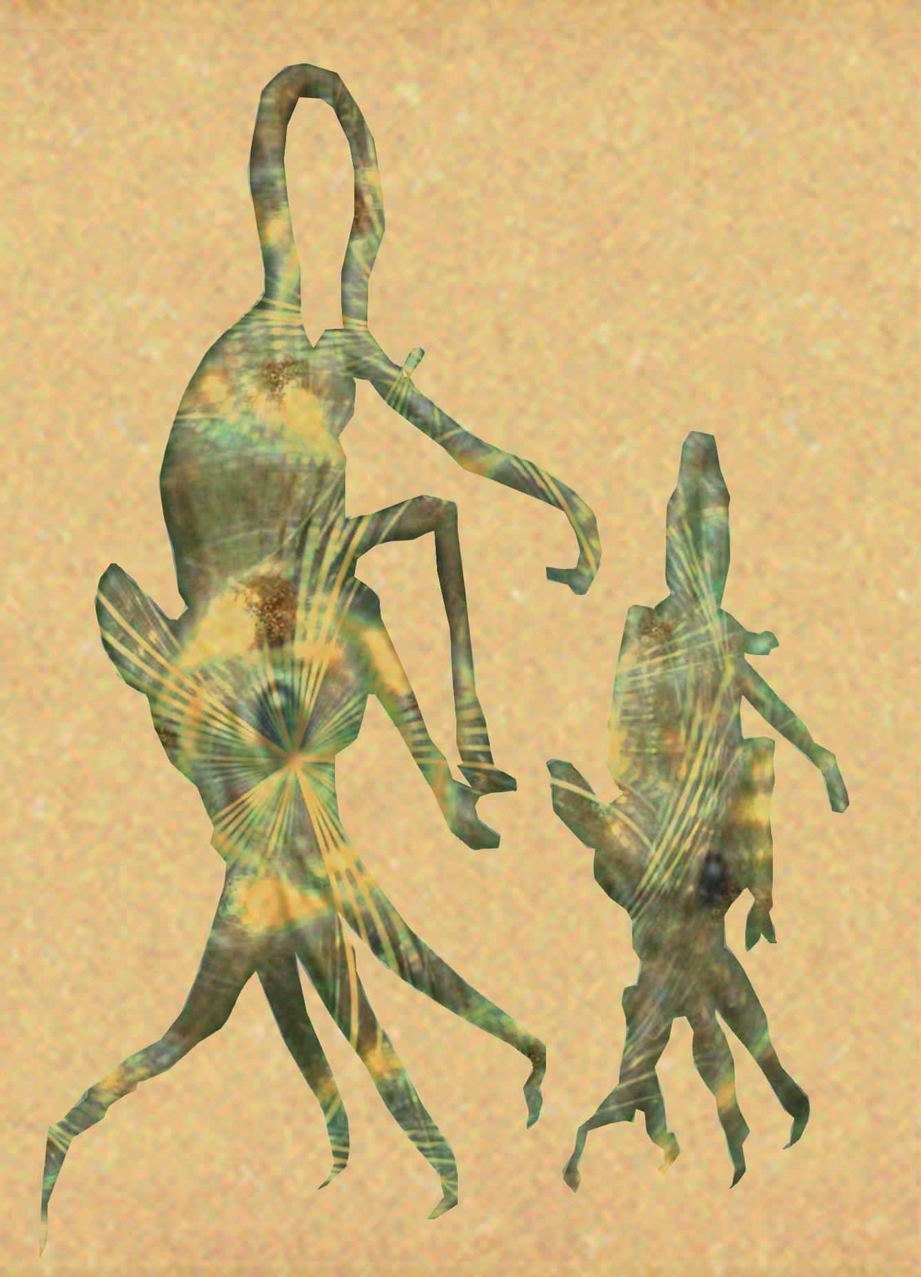 b) Rendu fou par la maladie symbiotique, Myndie, le serpent arc-en-ciel, tombe de Merriblinte en Korweinguboora, ouvrant ainsi une voie de communication entre le temps du rêve et le temps de l’éveil, mais inversant en même temps la topographie des deux deux pôles de l’univers. Alors Merriblinte devient Nyol-Blintebrewit, l’étoile masculine oubliée, où Bidju dépérit.