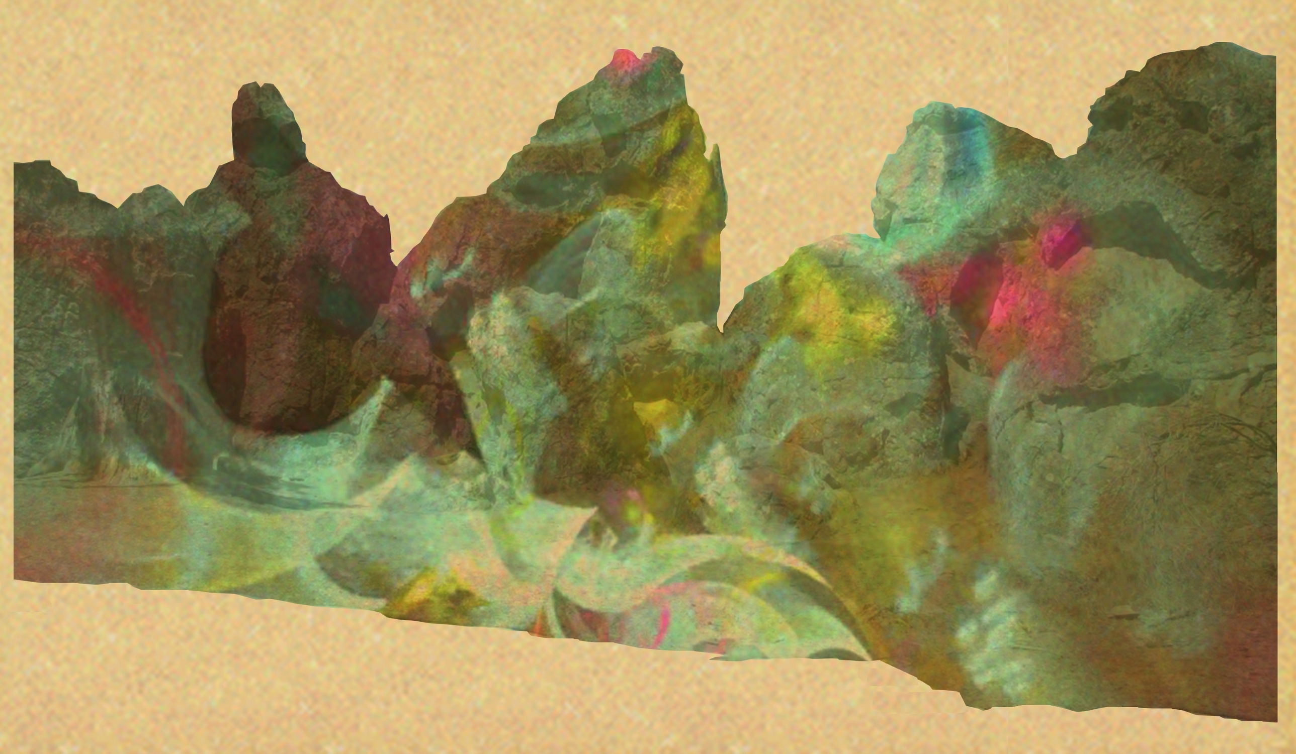 de rocs noirs, gris et dorés…