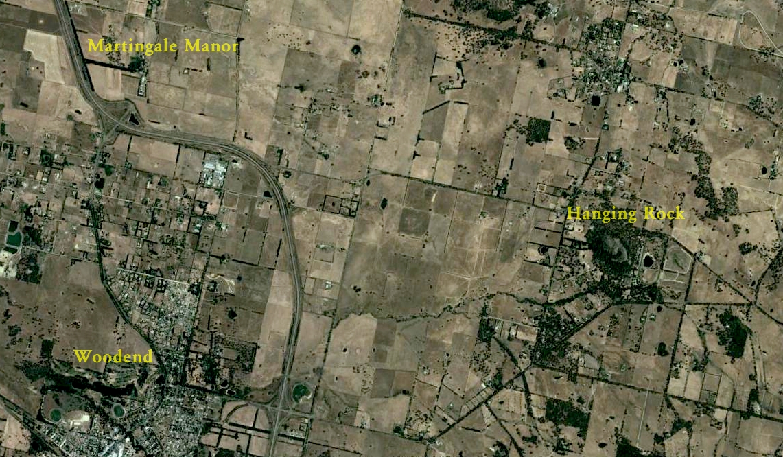 Woodend, Martingale Manor et Hanging Rock (Google Earth)