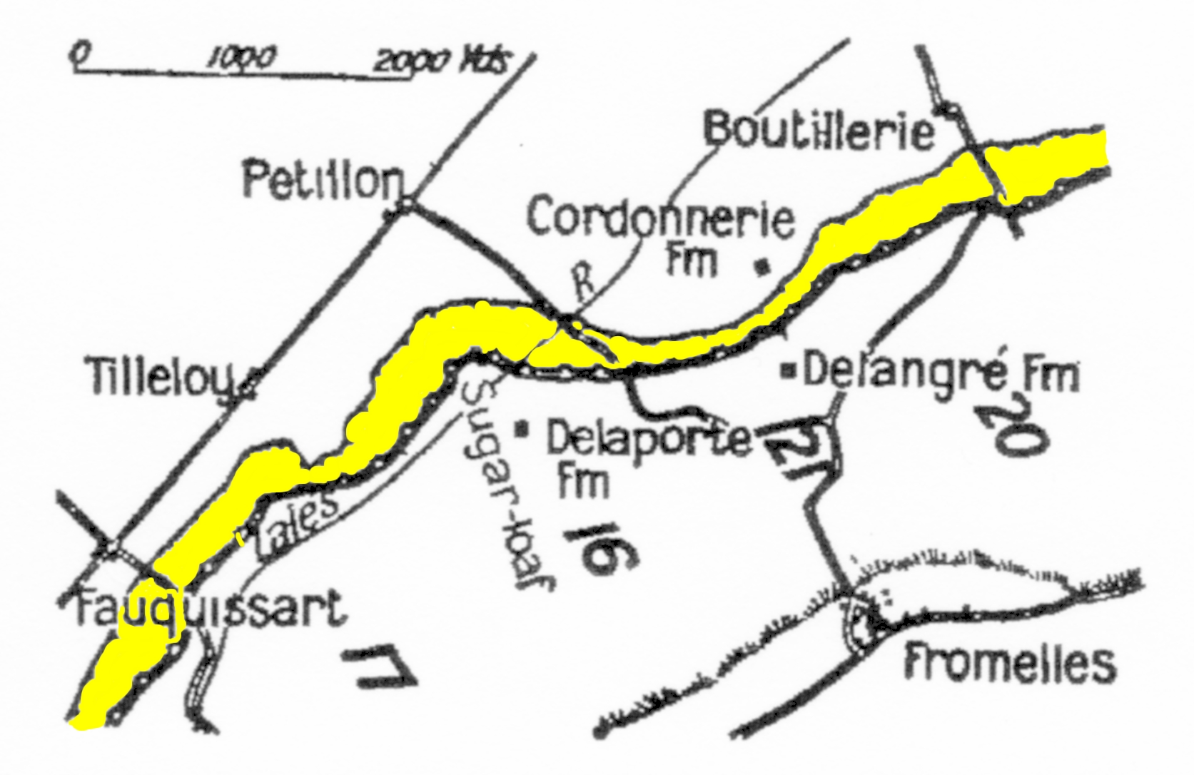 et plus près du Sugar Loaf (Pain de Sucre), les positions de la 15ème brigade, à la lisière sud du No-Man’s Land.