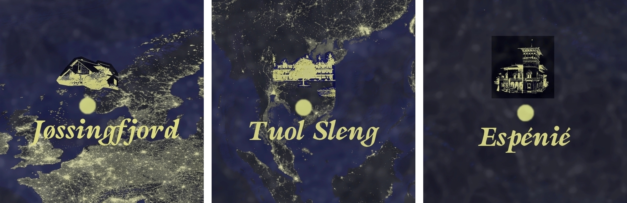 L’identification de cette « tranéï » de Jøssingfjorden (on ne l’a pas encore observée sur place), ainsi que celle de Tuol Sleng, a été rendue possible grâce à une série de « Portulans » réalisés par S-21. Ces peintures représentent une planisphère de l’Eurasie avec, sur une diagonale allant de la Norvège à l’océan Pacifique sud, les trois indications topographiques : « Jøssingfjord », « Tuol Sleng », « Espénié », accompagnées de vignettes qui correspondent exactement aux icônes figurant sur les parois de Cétile Baufore (destination appelée : « Espénié ») :