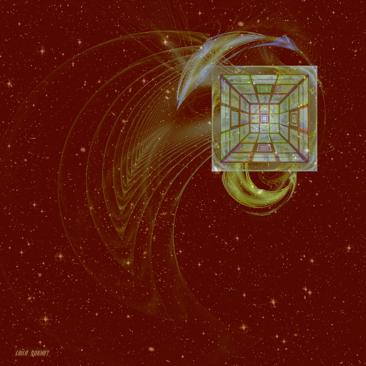 Chacune des huit tranéïξ cubiques qui appartiennent au miza de Cétile Baufore constitue l’une des huit faces tridimensionnelles d’un tesseract spatial[7]. Et ces faces tridimensionnelles sont, dans les quatre dimensions d’espace où le miza déploie son existence, contiguës les unes aux autres ; dans un tel espace, il faut et il suffit, pour passer de l’une à l’autre, de traverser l’une des six surfaces qui limitent une tranéï, et de basculer « à angle droit » (dans la quatrième dimension spatiale) vers l’une des six tranéïξ qui lui sont immédiatement adjacentes.