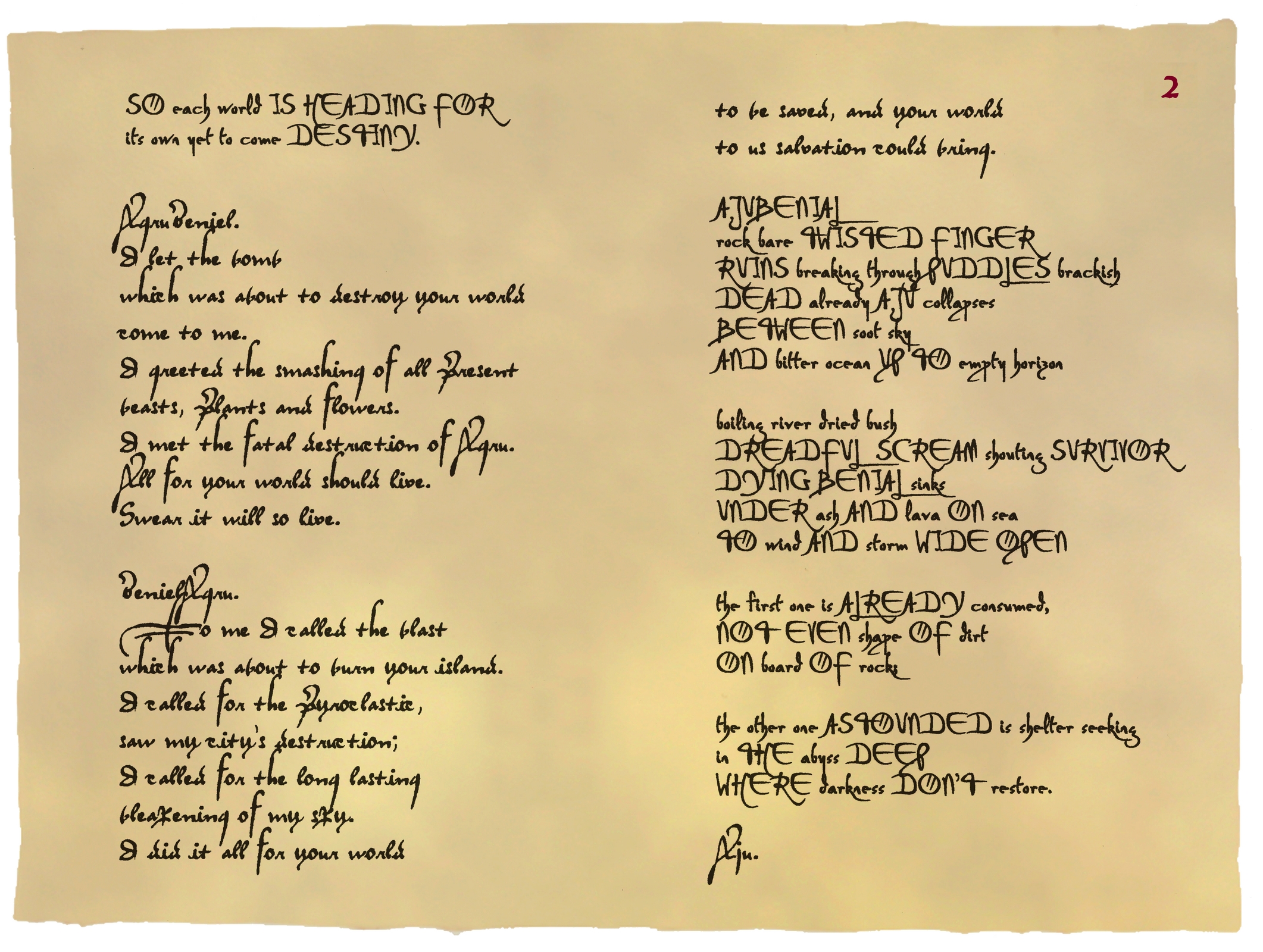 rock bare TWISTED FINGER RUINS breaking through PUDDLES brackish DEAD already AJU collapses BETWEEN soot sky AND bitter ocean UP TO empty horizon