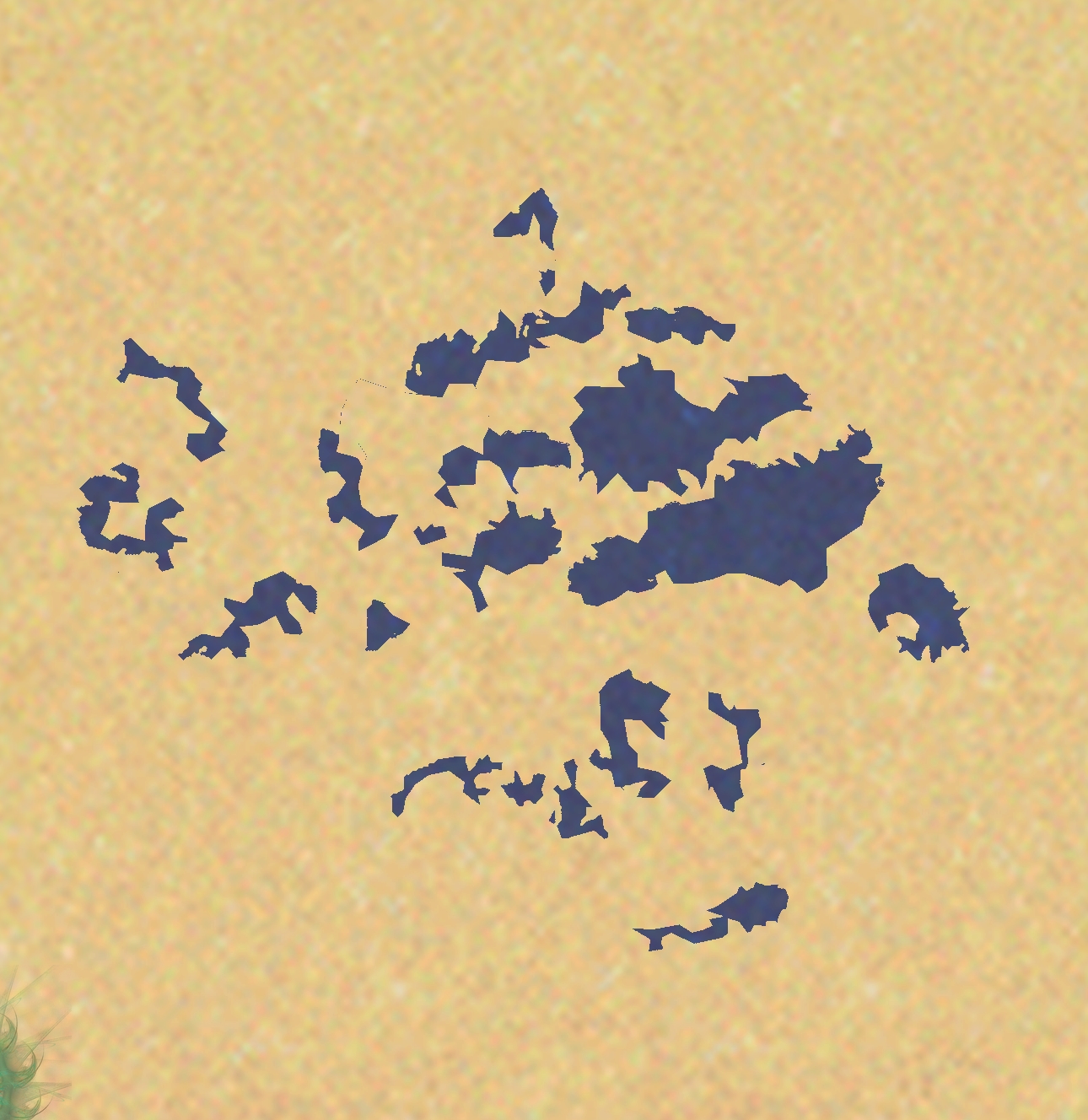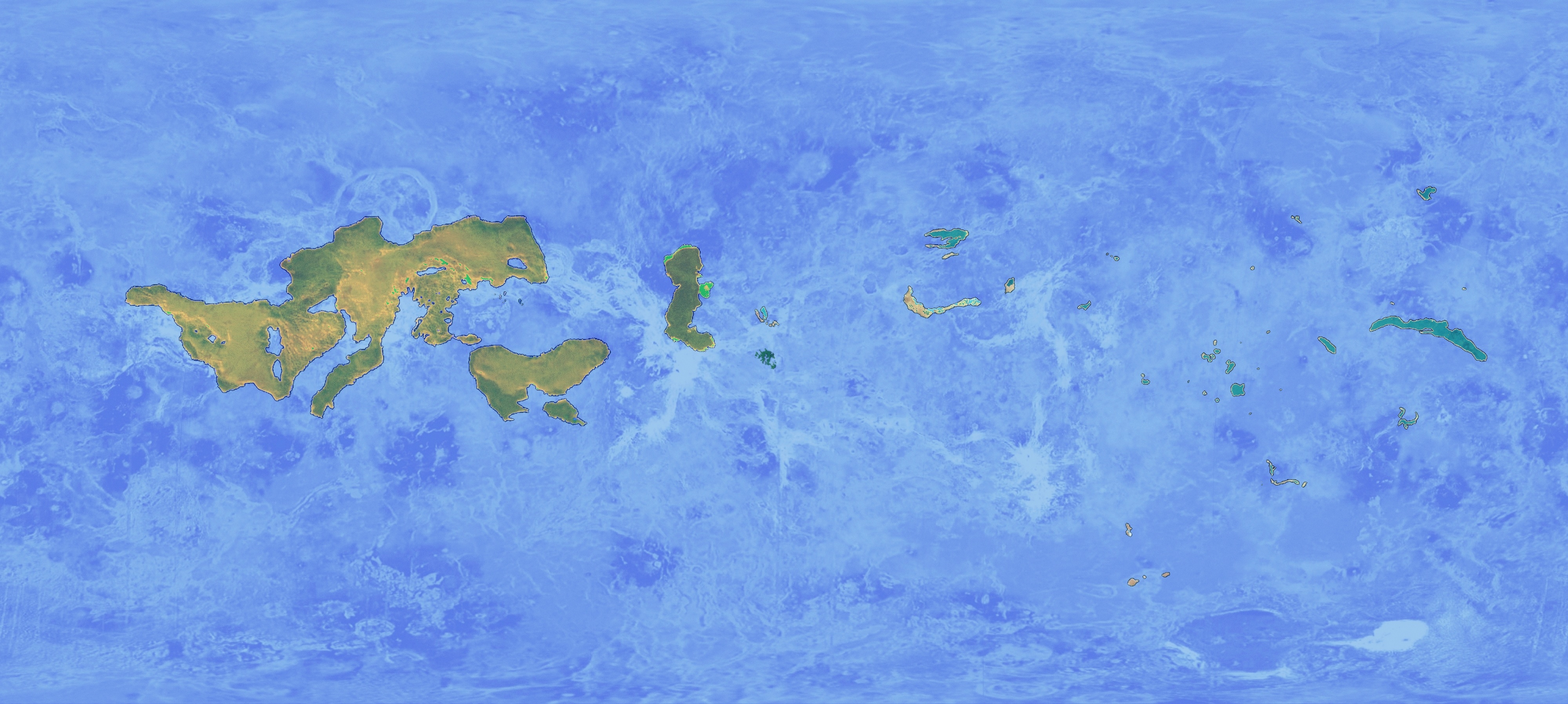 Planisphère d’Énantia, avec à l’est de l’archipel-continental ouest, Rem Érion