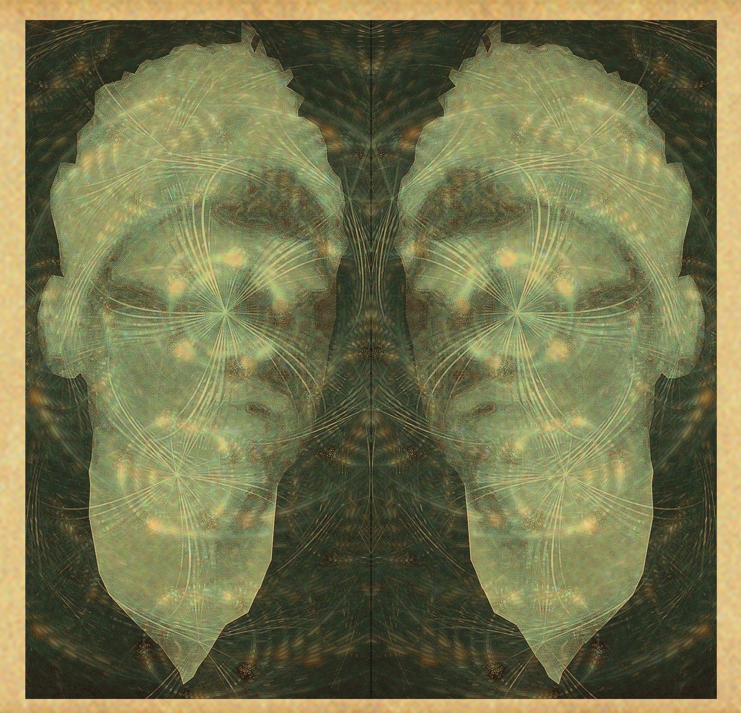 Le visage masculin que l’on peut observer au n°64, et qui se trouve dédoublé par effet de miroir intérieur, n’est pas identique à ceux qui figurent, eux aussi dédoublés, aux n° 9 et 11 du chapitre 2.