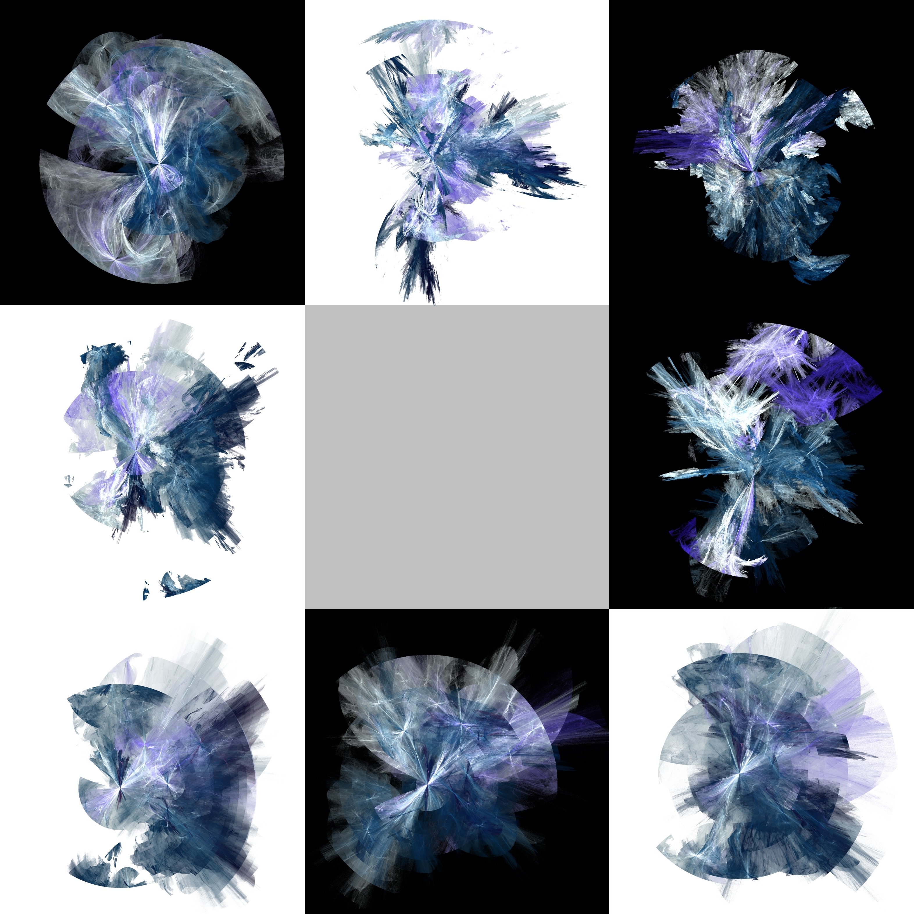 La tonalité générale de : ∞. Au carrefour du néant, dont « l’action » se situe dans l’asymptote extrême du temps cosmique, est assez différente de celle de leurs autres « vies parallèles ». La situation qui s’y trouve décrite précède l’apparition d’EingAnjea/AnjeiNgana, ce personnage composite qui figure dans : 0. Sans substance absolument, et correspond à l’ultime (ou archétypale) transition menant à la dissolution dans le néant (qui est peut-être un état d’indifférenciation de l’être, ce que la philosophie ancienne appelait la matière première) des « Grands Esprits démiurgiques », les habitants primordiaux du Temps du Rêve.