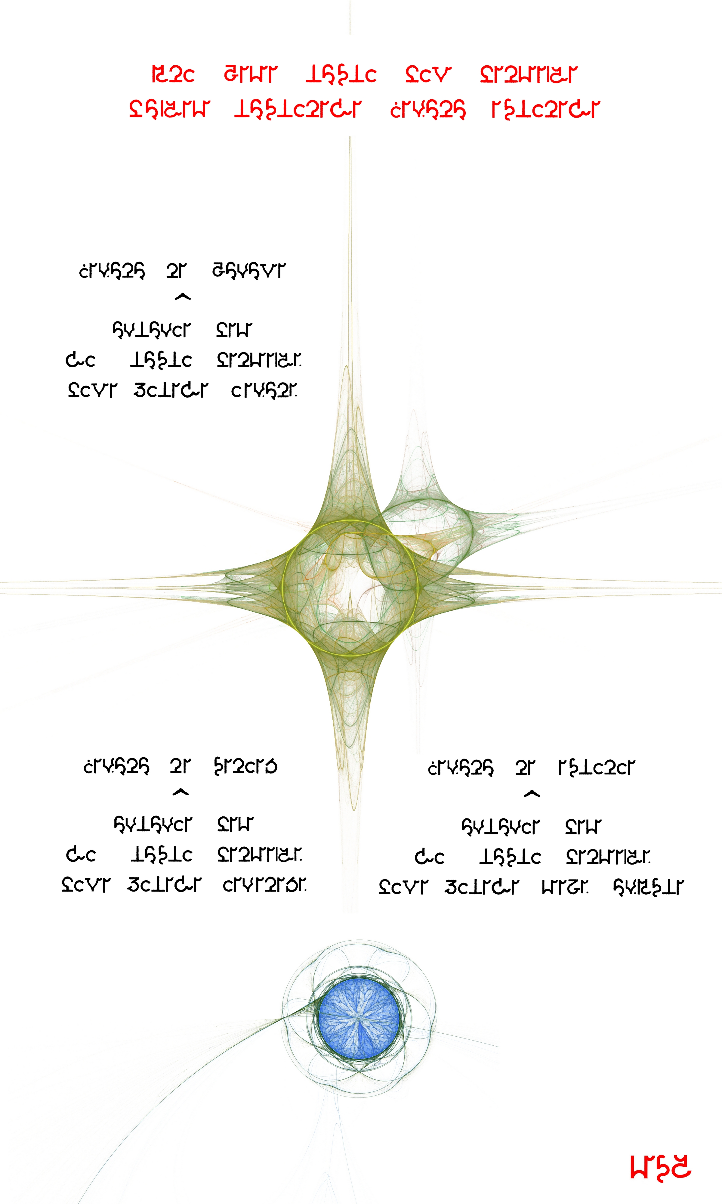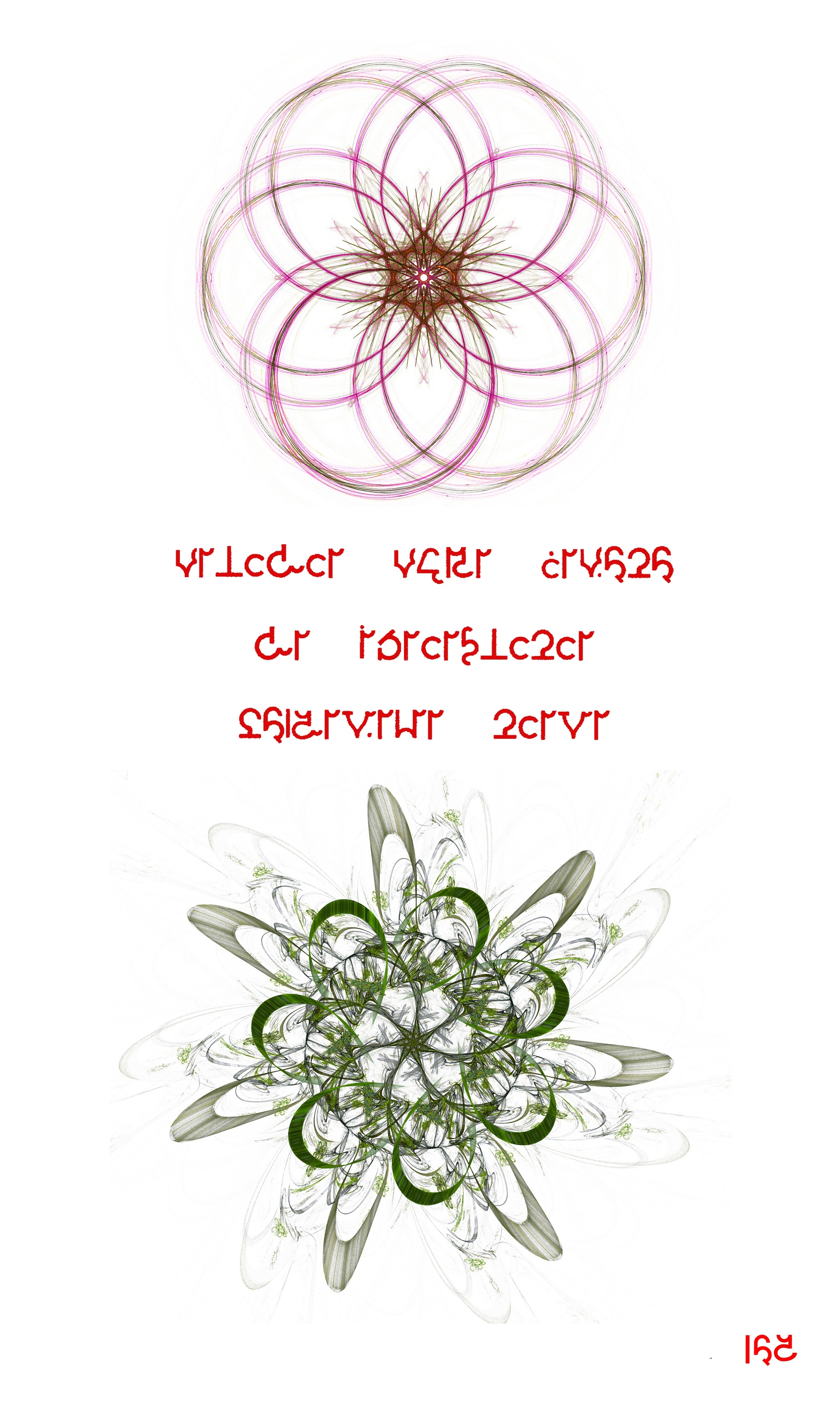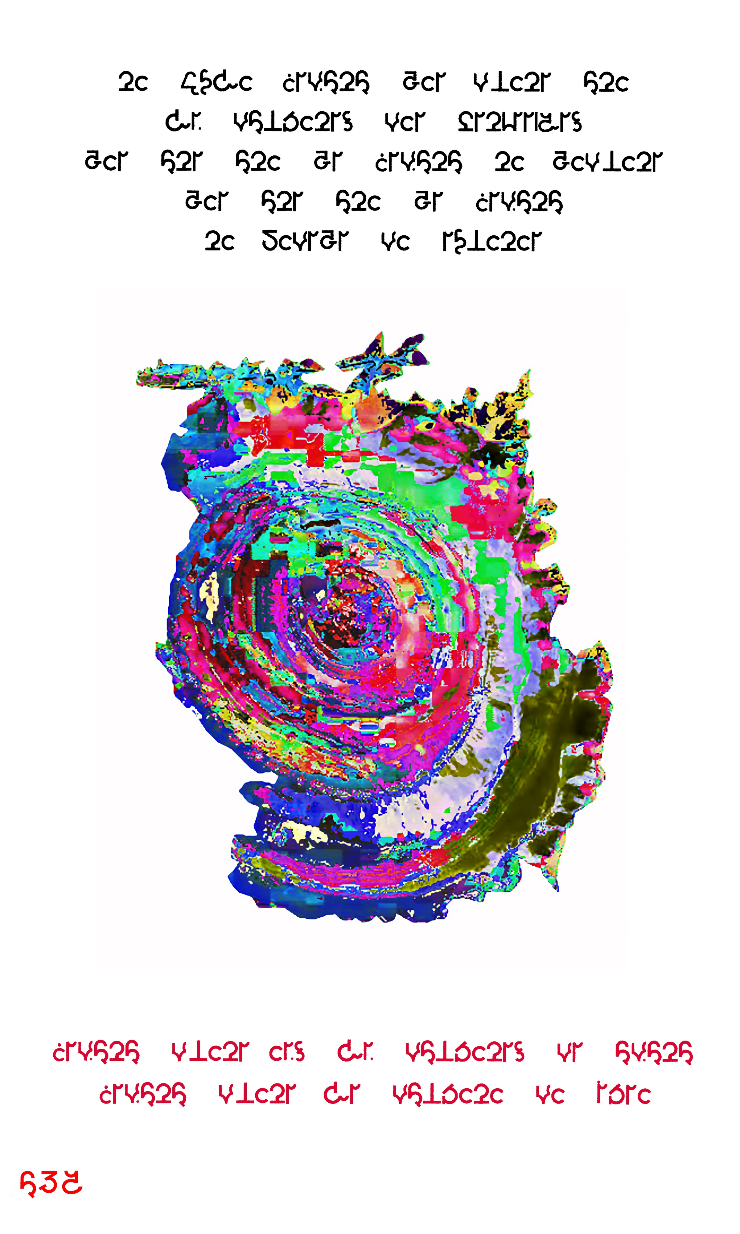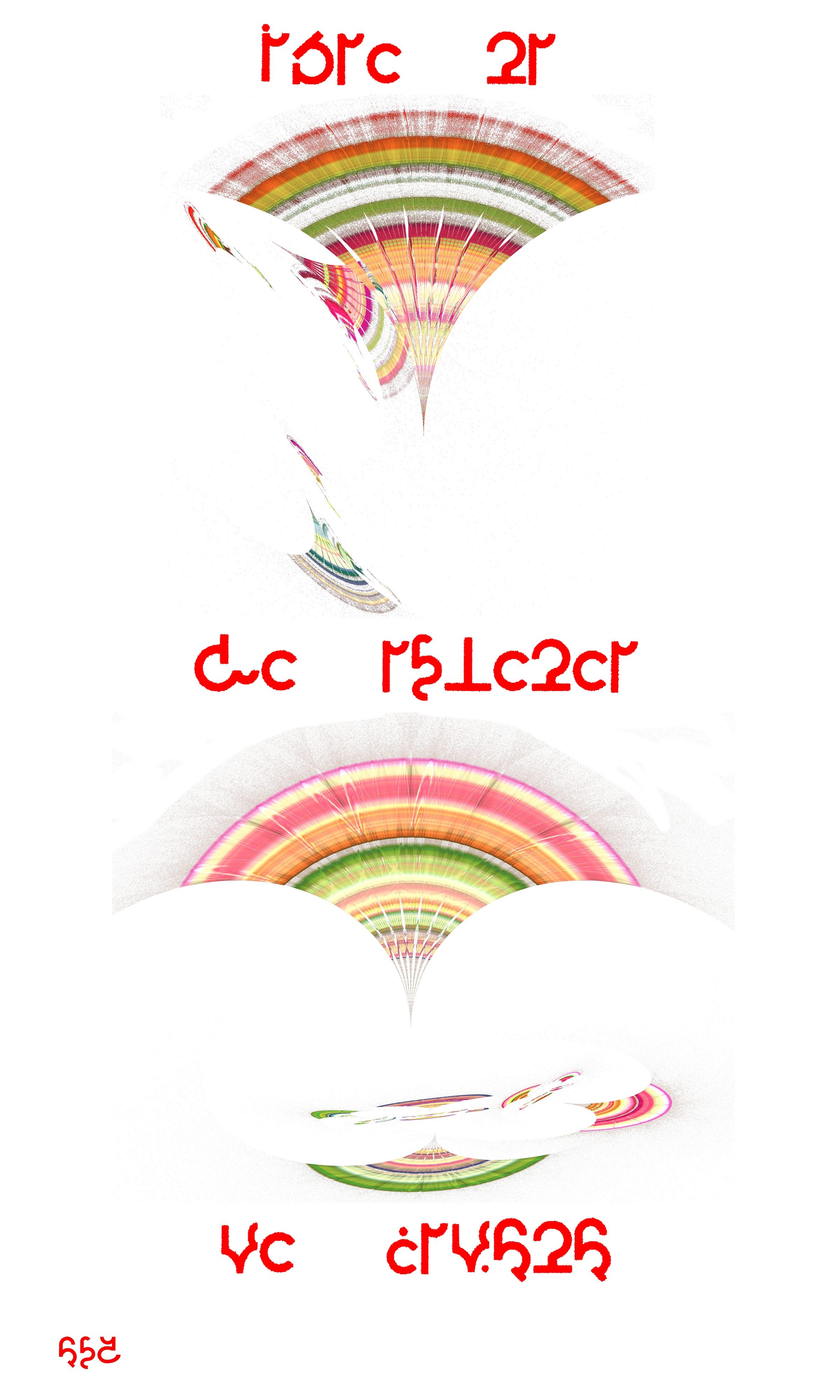 Il est donc nécessaire de distinguer, dans le rapport que l’être humain entretient avec la parole, deux manières radicalement distinctes. La première est liée aux qualités d’expressivité naturelle de chaque espèce pensante, qui à leur tour dépendent de sa nature (biologique et psychologique). Cette façon particulière de s’exprimer, appelée ici : « le langage des hommes » (zé tarvini tié mendècheξ), définit l’essence, non de la langue elle-même, mais de l’être parlant en tant que celui-ci appartient au monde, qui est le lieu du « devenir » (kavatéï[2]) et du « mouvement » (miritrizi[3]), c’est-à-dire en tant qu’il ne se considère pas lui-même comme une entité souveraine qui serait, ontologiquement parlant, indépendante de l’Univers. Ainsi, le « langage des hommes », qui est notre « langue du monde » particulière, est universel au sein de l’espèce que nous, habitants de la Terre aussi bien que de la planète Énantia, formons aujourd’hui ; et il doit être distingué des « langues (tarvinéξ) des hommes » qui, essentiellement multiples, peuvent se passer, en tant que systèmes de signes arbitraires déposés non dans les corps et les esprits des locuteurs mais dans une « masse [soi-disant] parlante », de toute prosodie, de toute expressivité, de toute modulation dans le déploiement unidimensionnel de leurs syntagmes.